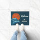 Crie um tapete personalizado de boas-vindas perfeito para a sua casa na praia ou adicione um toque de estilo surf a casas e apartamentos que estão longe do oceano com este tapete de boas-vindas legal. Este tapete de porta apresenta uma ilustração retrô de ondas intermitentes em tons de azul com um sol laranja brilhante acima e gaivotas silenciadas contra o sol. O gráfico tem um estilo angustiado dando-lhe uma aparência vestida e vintage e é colocado sobre um fundo azul marinho. A inscrição colorida está pronta para ser personalizada com seu próprio nome.