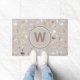 Adicione um toque de na moda à sua varanda frontal, com esta falsa porta do azulejo terrazzo italiano feita em tons de latas e castanhos. Um grande monograma de uma letra, no meio do tapete, está pronto para personalizar para atender às suas necessidades.