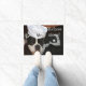 O terrier preto e branco de Boston com "boa vinda a bordo" da mensagem, cão está vestindo o equipamento do marinheiro. Sinta por favor livre adicionar, mudar, ou remover o texto se você gosta.