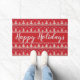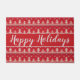 Boas festas com este Natal festivo fez malha o design com um teste padrão nórdico acolhedor vermelho e branco com pinheiros da floresta. O texto pode ser mudado.