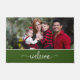 Adicione um toque personalizado à sua entrada com esta porta de fotos personalizada da família. O tapete de porta tem o texto bem-vindo em branco e um fundo verde. Adicione uma das suas imagens familiares favoritas para um toque especial de acabamento! Também faz um presente de excelente!