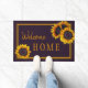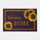 Modelo da casa russa e moderna de boas-vindas com flores de sol grandes ouros amarelas.