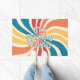 With a retro twist, personalize your doormat with a 70s inspired, colorful sunburst. The family name or other custom text is in layers, with the top layer being outlined text. The sunburst features multiple colors on a creme background.