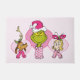 This delightful illustration brings together the full Grinch crew—the Grinch, Max the Dog, and Cindy Lou Who—in a sweet, non-traditional style! The Grinch is front and center with a mischievous smile, sporting a pink Santa hat and polka dot scarf. He's flanked by Max (in antlers) and Cindy Lou Who (in her red bow), both wearing matching pink scarves. The pink heart shapes behind each character emphasize a whimsical, loving, and totally unique holiday (or even Valentine's Day) spirit!