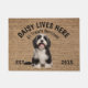 Tibetan Terrier Personalizado Amo de Cachorro bem-vindo. Este tapete de boas-vindas pode ser personalizado com o nome do seu cão, o slogan também pode ser mudado ou você pode usar uma fotografia do seu próprio cão (certifique-se de que é transparente). O texto diz: Daisy mora aqui... Todos os tratamentos são bem-vindos Edite o design para alterar a fonte, as cores e a cor de fundo. Ao substituir a imagem do seu cão, use uma imagem transparente. Faz um presente maravilhoso para uma festa de inauguração, feriados, amantes de cachorros e a maioria das vezes.