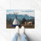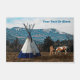 Uma imagem de um nativo americano e seu cavalo perto de uma tigela. A neve assentou nas encostas dos mais alto das montanhas ao fundo. Adicione seu próprio texto.