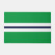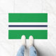 Este design ousado, desportivo, apresenta faixas de corridas marinho azul e centro branco contra faixas vibrantes verdes e verdes de verão de cima e de baixo.