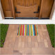 Esta porta tem um design de faixas verticais em cores modernas do século Médio.