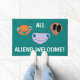 Este é um divertimento e o doormat colorido com os três aliens bonitos projeta e o provérbio "TODA A BOA VINDA dos ALIENS!"