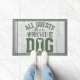 Este tapete de boas-vindas giro e engraçado para amantes de cachorros apresenta uma tipografia moderna e moderna que diz "Todos os Convidados Devem Ser Aprovados pelo Cão." O texto e uma borda dupla estão em verde-sábio e o fundo apresenta um estilo de madeira de casca de cinza. Ideia perfeita de presente para pessoas com cães.