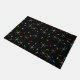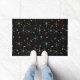 Estrelas modernas do século médio andam à porta em cores do período de tempo num fundo negro.