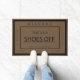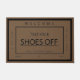 Um doormat com instruções aos visitantes para tomar seus calçados fora antes de entrar na casa, calçados exteriores pode levar os germes, a pastilha elástica, o matar de estrada, o poo animal, o cuspe e outras bactérias prejudiciais que podem ser transferidos na casa.