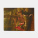 This design features a painting by the British Pre-Raphaelite artist John Collier (1850–1934). It is a richly detailed, character-driven painting that brings to life two secondary figures from Shakespeare’s play "As You Like It". Collier focuses on the unlikely romantic pairing between Touchstone, the court jester, and Audrey, a simple shepherdess. In the play, their relationship is deliberately unpoetic and humorous, a counterpoint to the idealized romances of the main characters. Collier translates and transports this contrast into visual form, creating a portrait of two people whose temperaments, social backgrounds, and attitudes toward love could hardly be more different. Touchstone is rendered with an air of intelligence and sly wit. His brightly colored jester’s costume, complete with elaborate patterns and bold tones, immediately signals his role as a fool, yet his expression also seems to make clear that he is the sharpest observer on the stage. Collier captures him in a moment of poised confidence, leaning slightly toward Audrey with a knowing, almost teasing gaze. The jester’s posture and facial expression suggest that he sees through the absurdities of both courtly and pastoral life, and that his courtship of Audrey is an amused, playful act as much as a genuine pursuit. Audrey, by contrast, is painted with simplicity and sincerity. Her clothing is plain and rustic, and Collier softens her features to convey her innocence and straightforward nature. She sits quietly beside Touchstone, her expression gentle, almost timid. Collier does not exaggerate her simplicity; instead, he allows her modesty to speak for itself, creating a character who is kind, humble and earnest in ways completely unlike her companion. Her presence in the painting brings a sense of grounded calm that balances Touchstone’s clever and playful energy. The setting, likely the Forest of Arden, is depicted with naturalistic detail, providing a peaceful woodland backdrop. This pastoral environment evokes the play’s themes of rustic escape and transformation while also highlighting the tension between courtly artifice (embodied by Touchstone) and rural simplicity (represented by Audrey). Touchstone’s wit and performative personality are seen beside Audrey’s innocence and sincerity, creating a relationship that is both charming and comically mismatched. Through careful characterization, detailed costuming, and a harmonious natural setting, Collier translates Shakespeare’s comic subplot into a vivid and thoughtfully composed image that highlights the enduring appeal of these two unconventional lovers. The original artwork of "Touchstone and Audrey" was painted by John Collier in 1890.