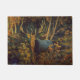 Um grande alce desportivo com grandes galhos de troféus durante o outono. Um sonho de caçador de alces! Cores de queda nas árvores da floresta ao redor criam o perfeito cenário natural de natureza selvagem para este animal de grandes jogos da América do Norte favorito. Trabalho de arte realista criada de uma pintura original de óleo por vida selvagem e artista equino Crista S. Forest.