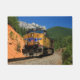 Uma fotografia de um trem que passa abaixo dos Crags do castelo na garganta do Rio Sacramento.