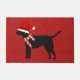 Trendy, fofo e engraçado cão preto, labrador vermelho burlap, porta de Natal.
