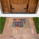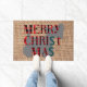 Trendy scottish Christmas dog terrier on burlap doormat.