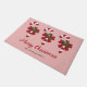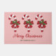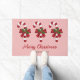 A ilustração original de Destei de três guloseimas de Natal listradas, vermelhas e brancas, decoradas com um arco vermelho e uma sagrada de Natal / Planta Sagrada Comum. A cor de fundo é rosa. Há também duas áreas de texto personalizáveis.