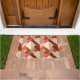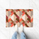 Porta num design moderno do século Médio de triângulos em camadas em tons de marrom, esticado, bege, ferrugem e camelo, acentuados com laranja-mandarina