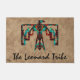 Personalize esta porta de boas-vindas de um único "tipo" Tribal Thunderbird! Ele apresenta um Thunderbird nativo americano em Turquesa, Laranja e Negro...Em um fundo de couro de bronzeado! Este é um Design de Arte Original do Artista Kerry Miller.