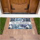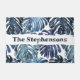 Sua esposa vai adorar este tapete de porta tropical de Jessica Amber. Este tapete de borracha personalizável apresenta grandes folhas de palma azul sobre fundo branco. Você pode alterar a cor de fundo. No topo, você pode adicionar seu nome de família em uma fonte náutica. Um excelente de decoração para sua casa de praia! 🌙 Para mais designs exóticos de praia, visite minha loja Zazzle.com/DriftwoodAndDreams ⭐ Para pedidos personalizados, envie-me uma mensagem no Zazzle