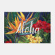 A mensagem de Aloha dá as boas-vindas aos seus visitantes no seu paraíso tropical. Esta pintura digital original do famoso ilustrador Jeff Fillbach é uma explosão das cores de algumas das mais belas flores da natureza. Apresentando uma série de pássaros do paraíso, da plumeria e do hibisco, os itens em nossa coleção de Paraíso Tropical elevarão seus espíritos, e alimentarão seus sonhos. Traga o paraíso para sua casa ou escritório hoje. Você pode personalizar a mensagem se preferir dizer bem-vindo.