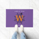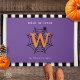 Truque de Aranha Halloween ou tapete de porta Monograma com fundo roxo. Truque ou Tratar! Celebre a noite mais assustadora do ano com essa teia de aranha, aranha e monograma inicial de design em preto, branco e laranja. Com o texto "Trick or Tratat" que pode ser alterado para a sua citação desejada. Texto pronto para personalizar com seu nome e Inicial.