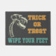 Divirta-se nesta temporada de Halloween com este esqueleto assustador e assustador de dinossauros. Leituras de texto Trick ou Tratat, Limpe seus pés. O tapete de porta de Dia de as Bruxas engraçado é perfeito para saudar os convidados de festas de fantasias de Halloween. Acessório divertido para trabalho, escritório, cubículo, dormitório, varanda, mansão assombrada e muito mais.
