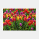 Este belo design apresenta uma imagem de alta definição de tulipas em vários tons brilhantes de vermelho, roxo e amarelo. As tulipas cresceram originalmente na Ásia Central e foram vistas como um símbolo do Império Otomano, no entanto, no século XVI elas foram importadas para a Europa e logo se tornaram altamente valorizadas como um bem valioso. Eles se associaram à Holanda, onde muitas flores foram cultivadas e comercializadas nos mercados. Muitos híbridos e cultivares bonitos, em todos os tipos de cores maravilhosas, foram criados desde então.