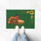Uma ilustração de um bonito desenho animado de peru vermelho-marrom vestindo um chapéu de peregrino preto e servindo uma deliciosa torta de abóbora durante o dia de Ação de Graças. Esta adorável design é uma ideia de presente para a comemoração de Ação de Graças, amantes de os animais engraçados e amantes do outono.