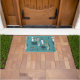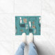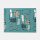 Um design de abstrato-arte inspirado no início do meio século, padrões modernos, com quadrados geométricos deformados em verde-real e ouro, com fundo turquesa.