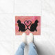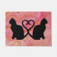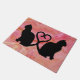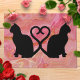 An all black silhouette of two cats. Their identically curled tails come together to form a heart. This all too-cute design is perfect for Valentine's Day, expressions of love, or a sweet romance with the pink marble swirl background.