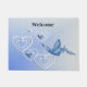 Uma borboleta e corações com notas musicais à deriva num fundo azul. Personalização de 100%. Clique no botão PERSONALIZAR para adicionar, mover, excluir, redimensionar ou alterar qualquer uma das fontes ou gráficos.