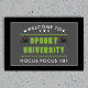 Abrace o espírito do Halloween com este tapete de boas-vindas personalizado que apresenta um texto moderno em estilo colegial que diz “Spooky University” e “Hocus Pocus 101”, além de duas aranhas pretas viúvas assustadoras. Este design adicionará um toque pessoal à sua decoração de Halloween. Modifique as três áreas de texto para criar um tapete de porta único para receber amigos, familiares e crianças que pedem doces com estilo. Se você está organizando uma festa de casa assombrada ou apenas deseja adicionar um toque festivo à sua entrada, este tapete personalizável é a escolha perfeita para mostrar seu espírito de Halloween.