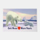 Apresenta uma pintura digital de um filhote de urso polar em busca de garantias da sua mãe no pacote de gelo do Ártico. O slogan "Noses frias (Um coração vermelho) Corações quentes" também aparece.