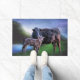 O tema do meu rancho, a imagem de arte apresenta uma vaca negra, Angus, e o seu vitelo, parados na beira da água de uma pasto esmagadora, verde. Perfeito para o fazendeiro. Trabalho de arte ©Sally Lannier/Painted Dreams Designs