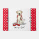 Vamos! Labrador Retriever - Laboratório Amarelo bonito, excitado com uma coleira vermelha na boca, pronto para fazer algo...vá dar uma volta, vá brincar, vá dar uma volta, de férias, em qualquer lugar! Copyright © Angi Laframboise. Engraçado Labrador Retriever dons de desenho animado para amantes de cães.