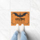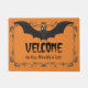 As características deste design um bastão com as asas expandidas com a palavra "Velcome" em uma pia batismal do gotejamento, obtêm a uma risada de todos seus visitantes este Dia das Bruxas. Fácil personalizar com seu nome de família.