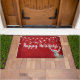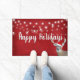 Veado grande com chapéu de Papai Noel e cordas luminosas brilhantes em vermelho para Felizes Feriados.