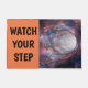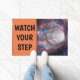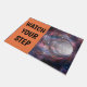 Esta engraçada tapete de boas-vindas avisa aos convidados para "Cuidado com o teu passo" e evitar cair no buraco negro.