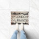 Portão cômico para cumprimentar seus convidados desprevenidos. Eles podem pensar duas vezes sobre pisar neste hilário tapete de entrada. Mesmo que você não consiga ver a cueca deles (espero), é uma maneira engraçada de enfeitar uma entrada. Legal acabamento rústico de madeira falsa com um gráfico de letras negras que mostra lugares e coisas icônicos que você esperaria ver em Londres e França.