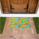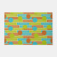 Esta porta tem uma design moderna do século médio de retângulos repetidos em verde limão, marrom-canela e turquesa com círculos em cima.