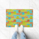 Tapete Verde limão, Cinnamon Brown, Retângulos Turquesa