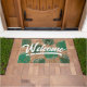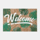 Sua esposa vai adorar este tapete de porta tropical de Jessica Amber. Este tapete de borracha personalizável apresenta grandes recortes e contornos de folhas monstera, em tons de verde e branco, sobre fundo marrom. Você pode mudar a cor das folhas e a cor de fundo. Por cima está a palavra "Bem-vindo" - que também se pode mudar, juntamente com o sublinhado - numa fonte de caligrafia branca divertida. Um excelente de decoração para sua casa de praia! 🌿 Para obter designs de praia mais exóticos, visite minha loja Zazzle.com/DriftwoodAndDreams 🌿 Para pedidos personalizados, envie-me uma mensagem no Zazzle