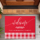 Red E White Buffalo Check Bem-Vindo Porta Personalizada. Personalize este design personalizado com o seu próprio nome de família.