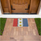 O design original nesta escala de banheiro conjuga o olhar alegre, aconchegante e direto do final da década de 1930 até os anos 40. Dividido em 3 faixas verticais de largura igual: pontos de pinos brancos ostros em vermelho cereja à esquerda, pontos de pino branco ostrado em azul médio à direita e uma faixa central de pontos de pinos azuis Marinhos em branco ostra que tem uma coluna de estrelas a cores de mostarda de 5 pontas flutuando no meio e bordada em 2 lados com faixas verticais de rick azul médio.
