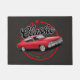 Esta é uma renderização de um veículo clássico com um fundo criado digitalmente.