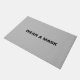 Vista uma máscara de cinza de luz de carvão e um tapete de porta elegante minimalista de texto personalizado preto. Texto totalmente personalizável