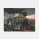 Procurando a decoração do quarto de menino? Este tapete de locomotiva de trem antigo tem uma pintura excitante de um motor de trem antiquado correndo duro à noite com chamas saindo da chaminé. De 1800 e impressão chamado "O Expresso da Noite".