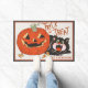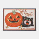 Esta adorável porta do Halloween mostra uma ilustração antiga de um gato negro gritando em uma abóbora de gole-o-lanterna com as palavras "Trick or Tratat". Personalize adicionando seu nome ou texto especial.